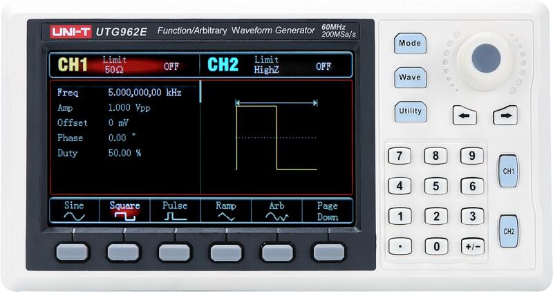 ---------- FREQUENCIA JELLEMZŐK ----------- Szinusz: 1 Hz~60 MHz Kvadratúra: 1 Hz~20 MHz Impulzus: 1 Hz~20 MHz Ramp: 1 Hz~400 kHz DC: